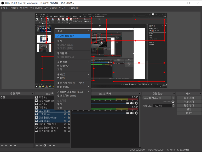 OBS studio로 온라인 동영상 강의 만들기(5)-기능 살펴보기(그룹기능 이용하기/소스 목록 이해)