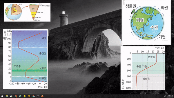 ▲ 먼저 '지구시스템'과 관련된 이미지들을 화면에 배치했습니다. 다음은 '세포소기관'과 관련된 장면을 추가하겠습니다.