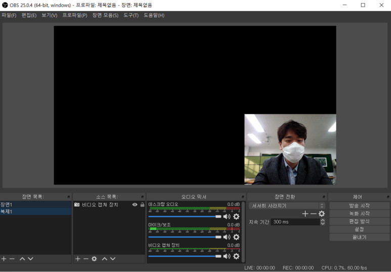 ▲ 장면2에도 웹캠화면이 잘 나오는걸 확인할 수 있습니다.