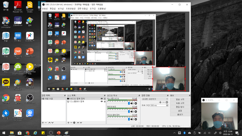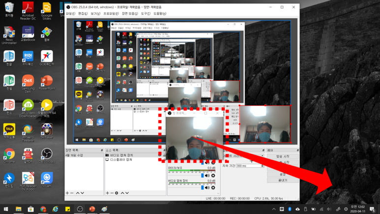 개인적으로 내 얼굴을 띄운 상태에서 수업할 때에 가장 간편한 방법이 아닐까 생각됩니다. 물론 소스들을 활용한 수업을 할 때는 불편하지만, 기본적으로 내 얼굴을 띄우고 그 녹화 상태를 확인할 때는 가장 좋은 방법일 것 같습니다.