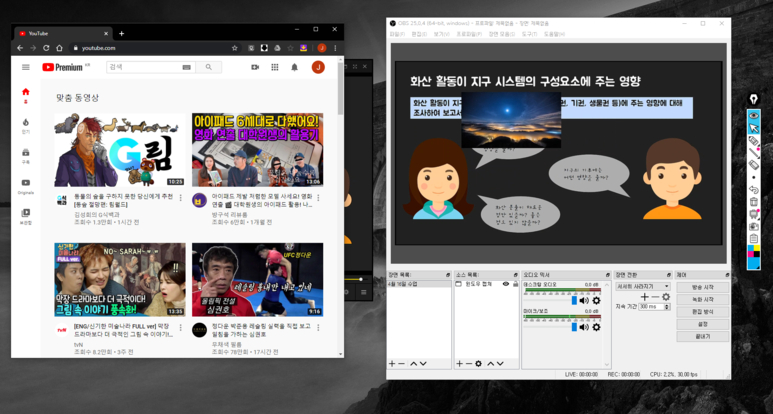 OBS studio로 온라인 동영상 강의 만들기(3)-기능 살펴보기(이미지/동영상 띄우기)