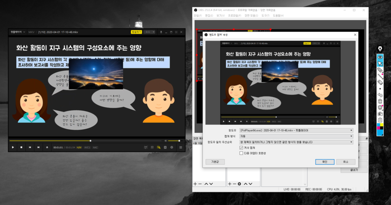 (윈도우 캡쳐가 안되는 프로그램도 있습니다. 저는 '팟플레이어'를 활용했습니다.)