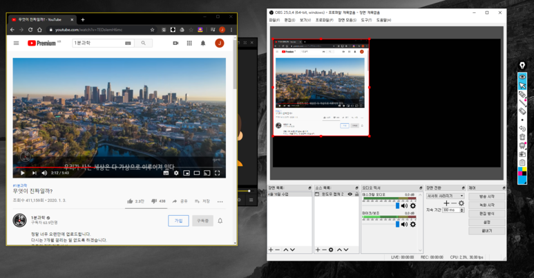 '윈도우 캡쳐' 기능을 통해 동영상과 유튜브 영상을 화면에 띄우면 더 효과적으로 영상을 활용할 수 있습니다.