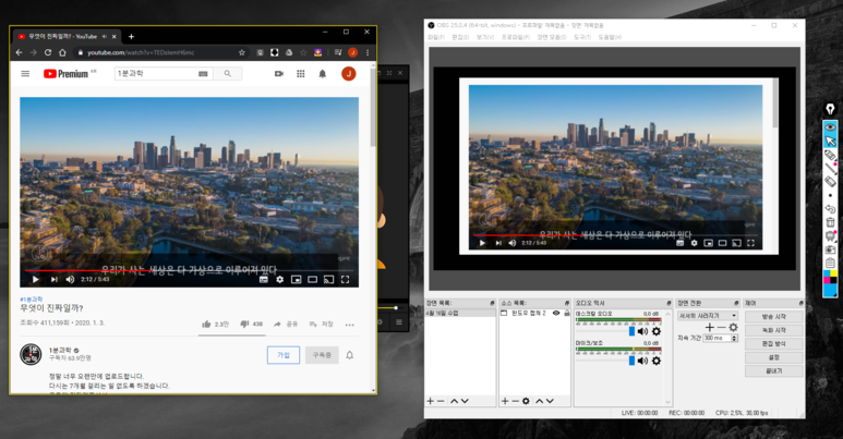 이전에 '미디어 소스' 추가를 활용하여 동영상을 보여주는 방법을 설명했습니다. 이는 소스를 바로 켜서 영상을 보여줄 수 있어 편하지만, 동영상을 일시정지하고 설명하는 것은 불가능하다는 단점이 있습니다.