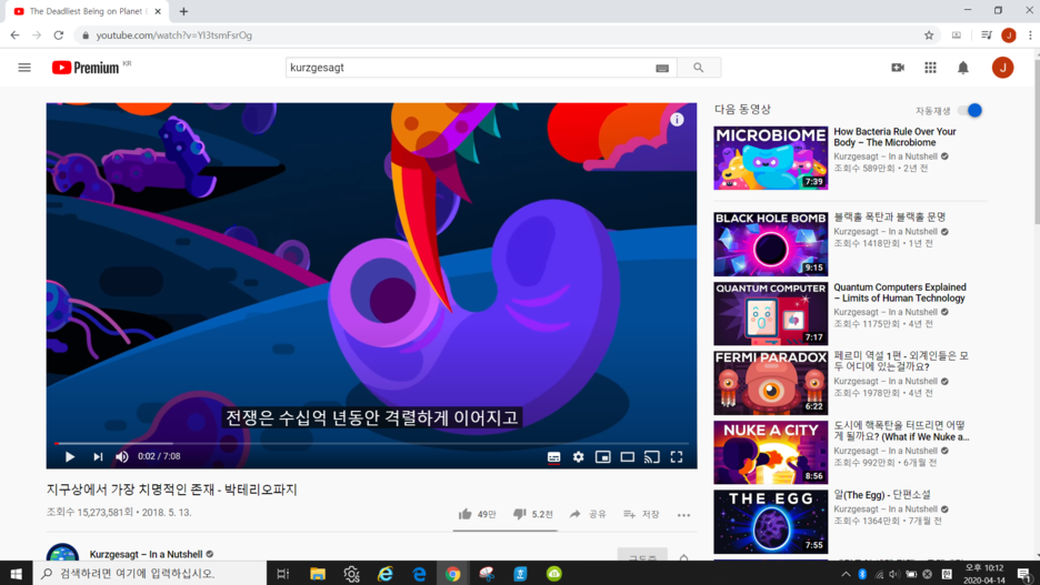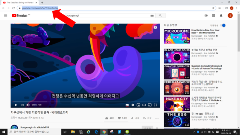 다운로드하고자 하는 영상을 유튜브에서 검색합니다.