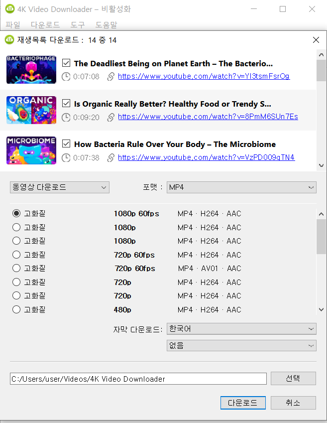 유튜브 다운로드 프로그램 4K Video Downloader(고화질/자막/재생목록 다운로드)