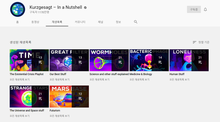 원하는 채널에 들어가 재생목록을 클릭해줍니다.