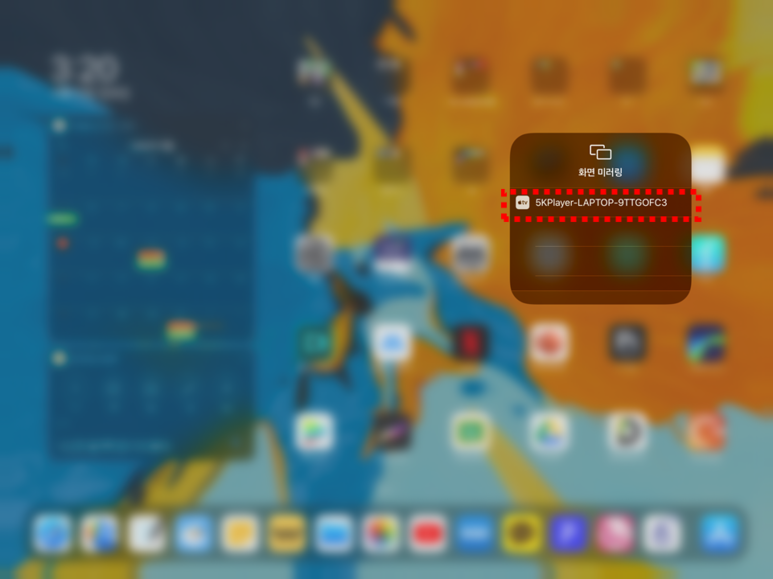 ▲ 미러링 목록에 5KPlayer가 추가된 것을 볼 수 있습니다. 눌러줍니다.