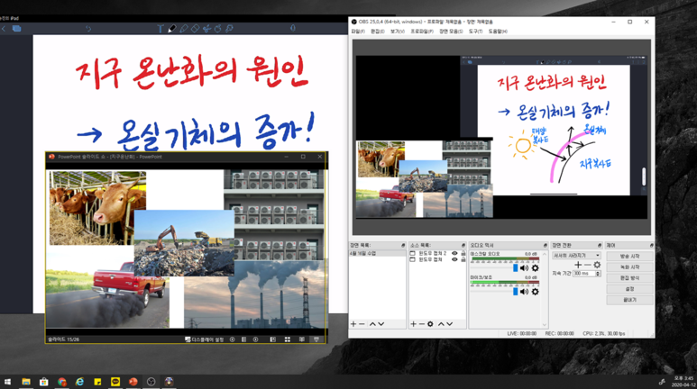 ▲ OBS studio에서 노트 앱을 띄워서 전자칠판 처럼 사용할 수도 있습니다.