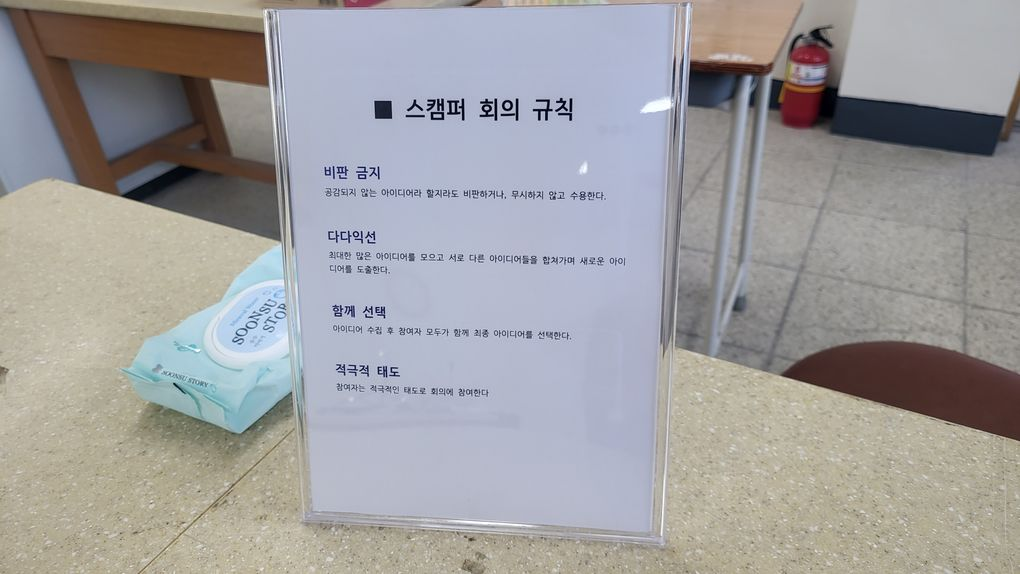 1. 비판 금지: 공감되지 않는 아이디어라 할지라도 비판하거나, 무시하지 않고 수용한다.