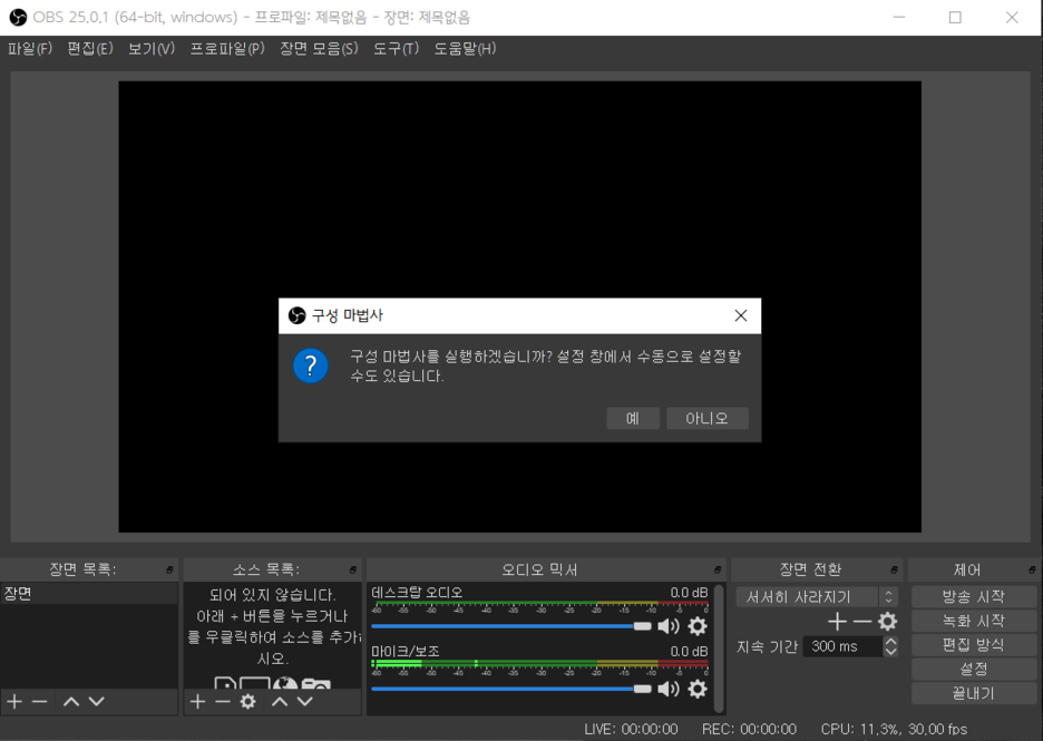 처음 프로그램을 실행시키면 이런 화면이 뜹니다. 여기서 예를 눌러줍니다.