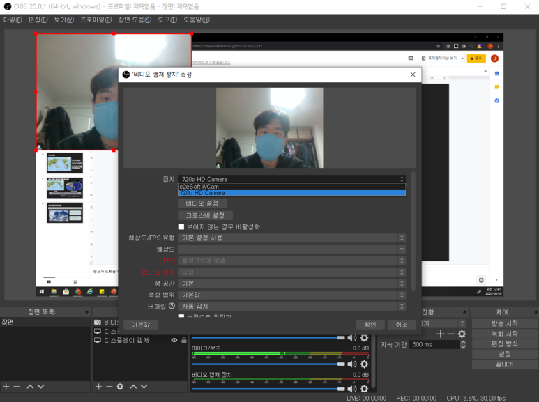 ※ 당연한 이야기지만 얼굴 녹화를 위해서는 별도의 웹캠 또는 노트북의 내장 웹캠이 있어야 합니다!