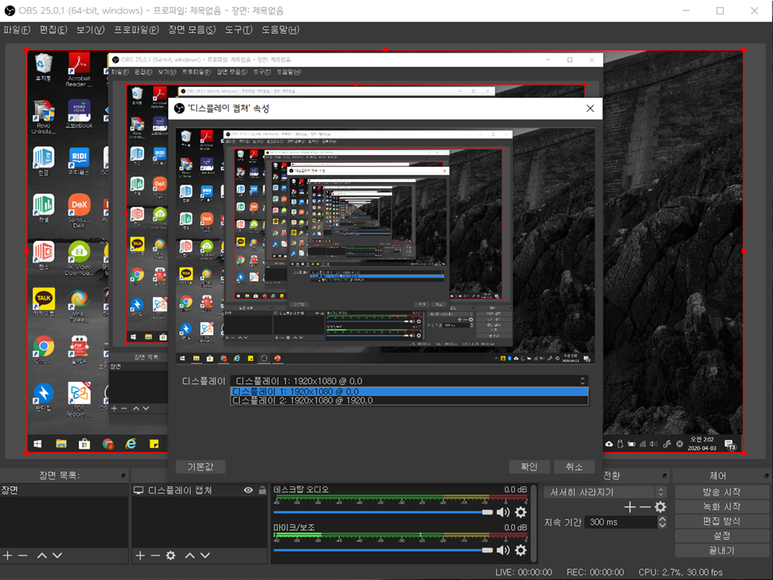 두 대의 모니터를 이용하기 위해서는 디스플레이 캡쳐 소스를 1개 더 추가해주면 됩니다. 방법은 위에서와 동일합니다.