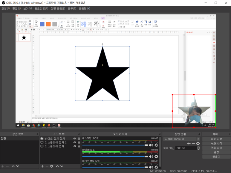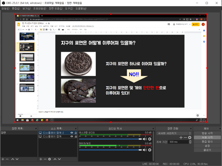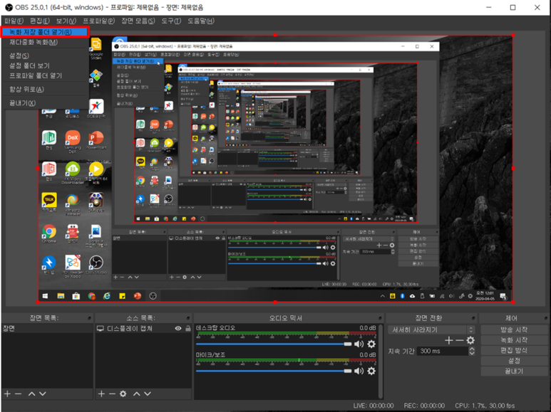 OBS studio로 온라인 동영상 강의 만들기(2)-기능 살펴보기(컴퓨터화면,내 얼굴 나오게 녹화하기/녹화폴더열기)