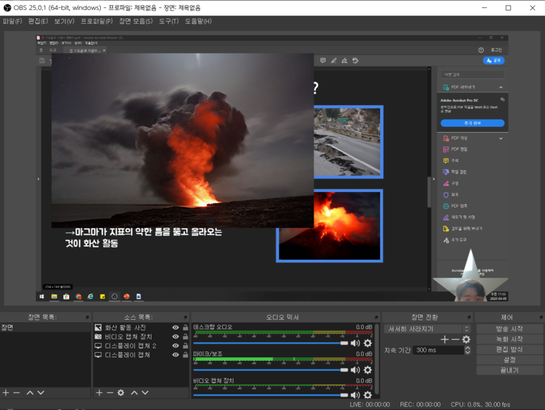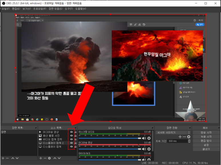 ▲ 이제 컴퓨터화면, 웹캠, 이미지, 동영상을 모두 한 화면에 띄울 수 있습니다!