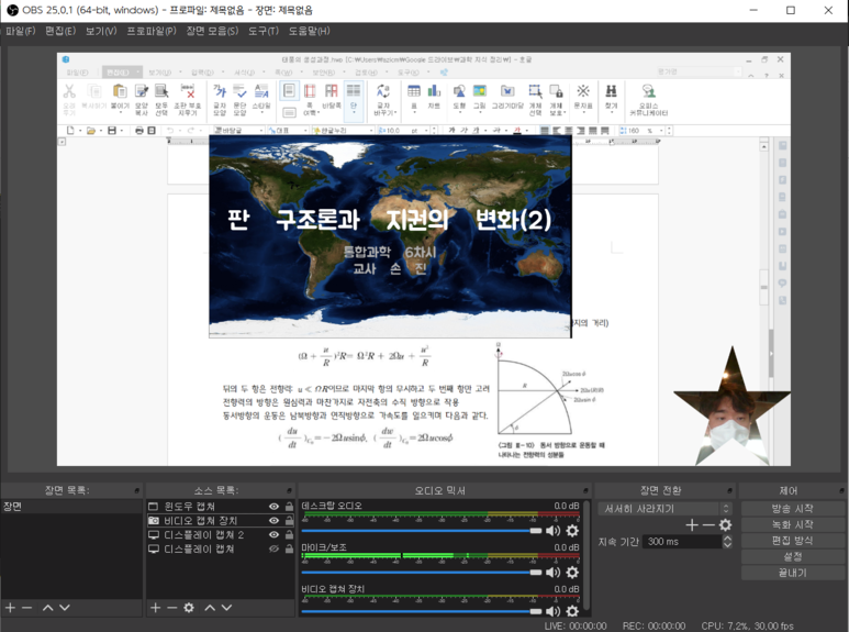 ▲ OBS studio 화면을 보면서 ppt 슬라이드 쇼를 진행하시면 됩니다.